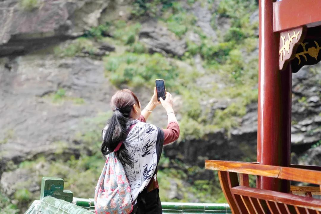 在廬山西海,景點琳瑯滿目,其中最令人驚嘆的要數(shù)西海大峽谷。峽谷深邃而壯觀,高聳的巖壁和繁茂的植被共同營造出人間仙境。湘聯(lián)家人們坐上網(wǎng)紅觀光小火車,自山頂盤旋而下,遠眺山林云霧,大口呼吸清新氧氣,既刺激又好玩,令人心潮澎湃。