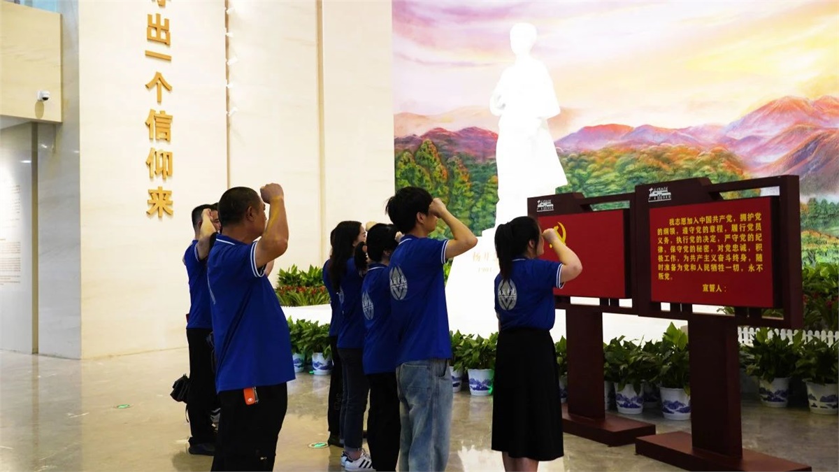 楊開(kāi)慧故居記錄了革命烈士楊開(kāi)慧的革命足跡,同時(shí)全國(guó)第一個(gè)省級(jí)黨支部——中共湖南支部曾在此辦公,中共湘區(qū)委員會(huì)也在此成立,革命熱血和奉獻(xiàn)精神更銘刻于此。重溫“驕楊”精神,堅(jiān)定理想信念。湘聯(lián)電纜黨支部在建黨103周年來(lái)臨之際,組織黨員及積極入黨分子走進(jìn)開(kāi)慧鎮(zhèn),探尋先輩足跡,感受信仰力量。
