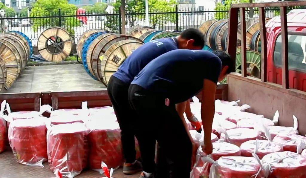 ▲徐應南和同事正在搬運電線