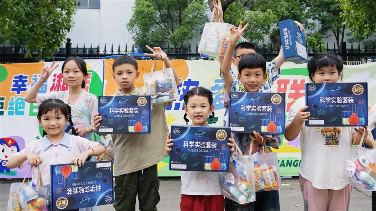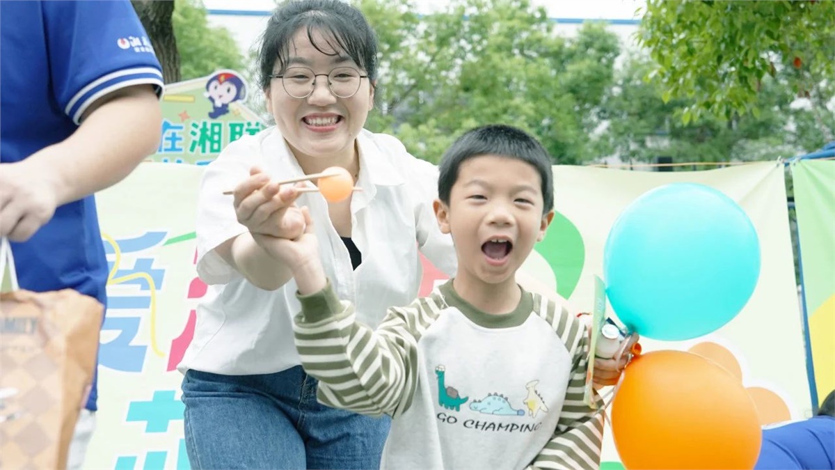 運動會后,小朋友們在“湘聯(lián)寶貝歡樂集市”領取了零食禮包和科普實驗套裝,孩子們捧著禮物,臉上洋溢著滿足與幸福。