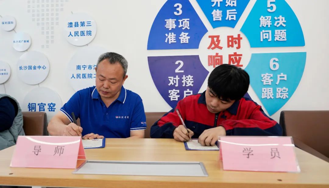 2024年“芯”火計劃選取了工作責任心強、技術(shù)能力過硬、工作經(jīng)驗豐富的管理人員作為培訓講師,根據(jù)7位青年職工的崗位技能需求和講師的專業(yè)領(lǐng)域,分崗位系統(tǒng)化、有針對性地對7位徒弟進行技術(shù)知識、技能實操以及工藝管理等方面的培訓。在開班儀式上,講師和學員通過簽訂師徒帖、發(fā)表宣言、獻花等環(huán)節(jié),隆重完成師徒結(jié)對儀式,形成緊密和諧的師徒關(guān)系。